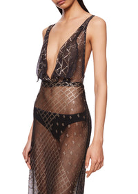 An original 1920's gown with a beautiful plunging neckline and a sheerness that creates the most perfect sexy evening dress.