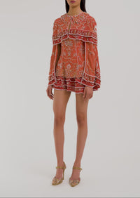 Designed with tiers of embroidered fabric that add layer and dimension, the Cape is crafted from a special chiffon-effect fabric made from 100% recycled bamboo fibres creating an effortless lightness while still maintaining its structure. Intricate border embroidered details create definition to the silhouette.