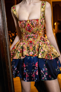 This mini dress pays homage to the 'Millefleur' tradition—a timeless motif that flourished in medieval European tapestries and Renaissance textiles. Designed as a signature house print by Annie, the floral pattern echoes the dense, organic beauty of a thousand flowers, intertwined with delicate vines and blossoms.