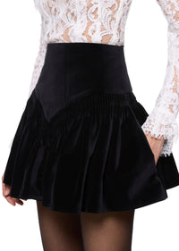 Crafted from luxurious deadstock velvet, the Black Medici Skirt blends traditional Renaissance artistry with structured shaping, evoking the opulence of the 15th century.