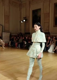 Inspired by Shakespeare's "Othello," this elaborate design with its square neckline, delicate shoulder structure and intricate gold detailing evokes the Venetian setting of the tragic play. The garment’s detail reflects the play's themes of opulence and status in Renaissance Venice, where Othello as a Moorish general navigates a world of wealth and political intrigue.