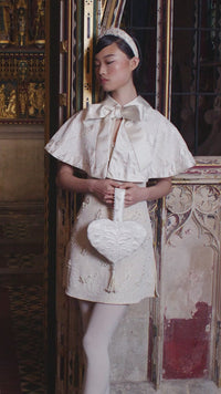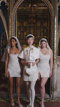 Step into Annie’s x Clio Peppiatt new capsule collection. This show-stopping ivory embellished dress is saturated in white and silver beads. The figure-hugging mini is further embellished with crystals and pearls along its soft squared neckline. Designed in the fit and flare silhouette the dress features slits on each side of the hips for comfort so it doesn't inhibit any movement.