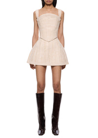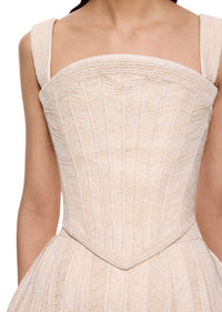 The Raphael Corset features an intricate and delicate handwoven base, its architectural construction mirroring bodices worn in the 16th century. Serving as a true masterpiece of craftsmanship and featuring meticulously woven delicate straw fibres, the Raphael corset sculpts the silhouette.