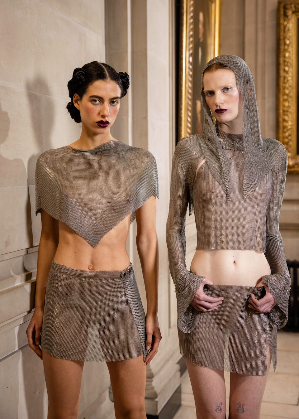 The Sforza collection is an audacious interpretation of medieval armour, reimagined here as a striking asymmetric Cape.