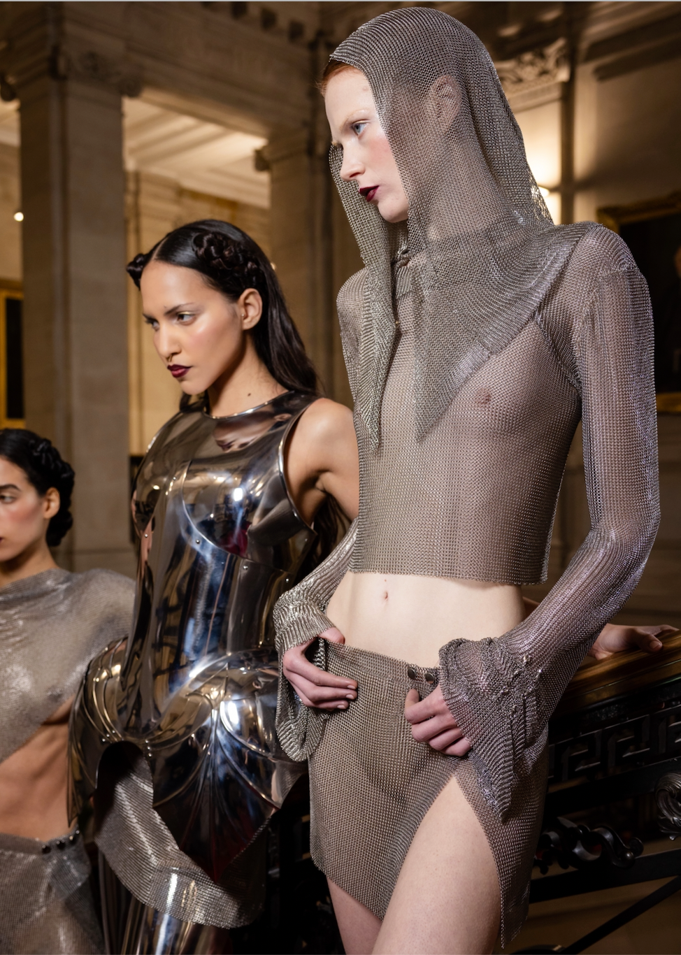 The lightweight chainmail construction creates a second-skin effect, celebrating both protection and sensuality.
