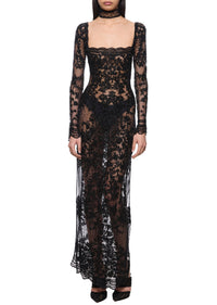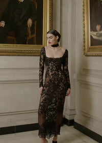 Inspired by the frescoes adorning noble Venetian palazzos, delicate thread work and beading create a mesmerising pattern that captures light and shadow. Each botanical motif is meticulously hand-placed, celebrating the marriage of virtue and beauty so revered in Renaissance Italy.