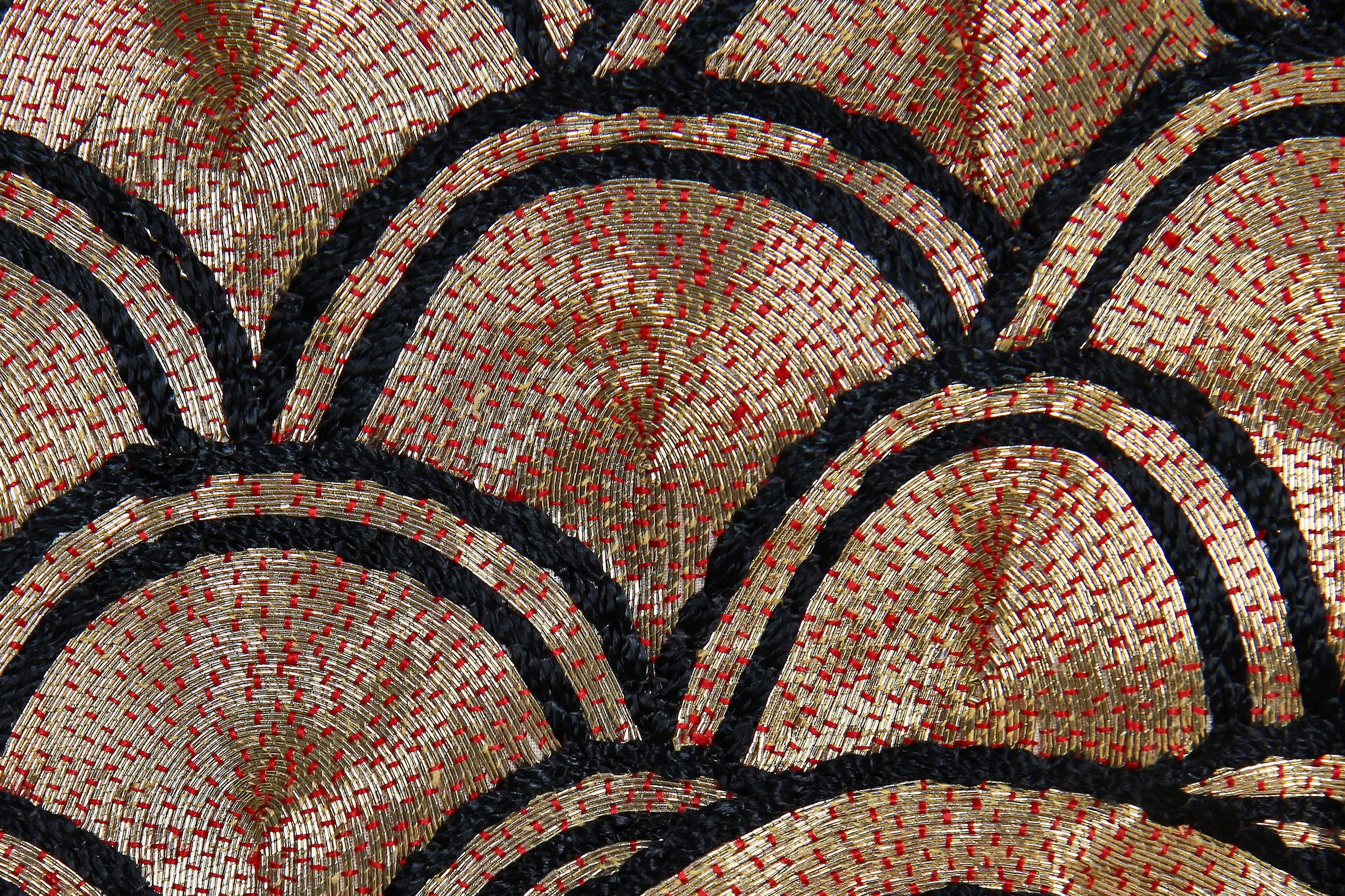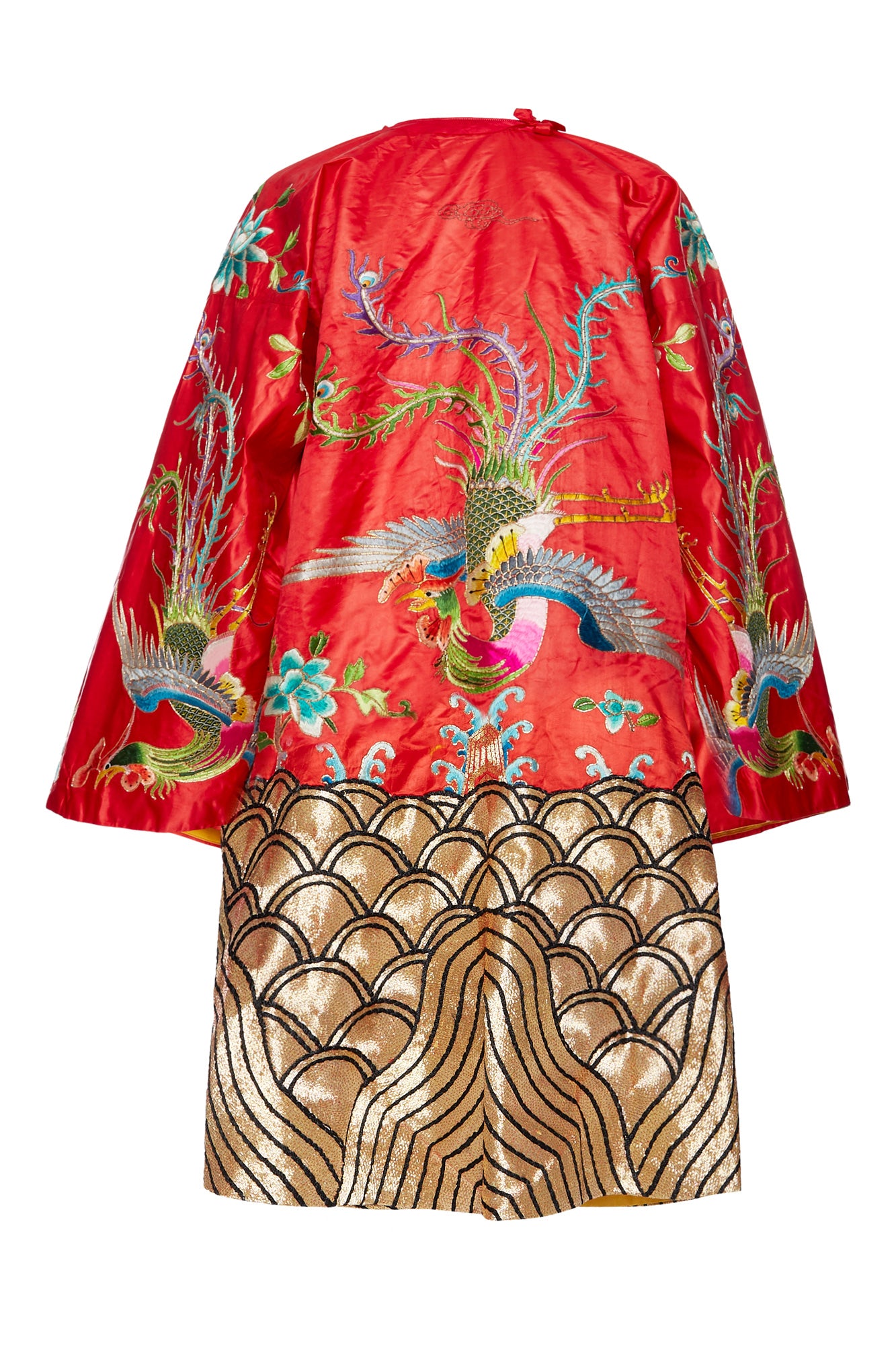 Original theatrical Chinese robe with large phoenixes worked in colourful silk and couched gold threads