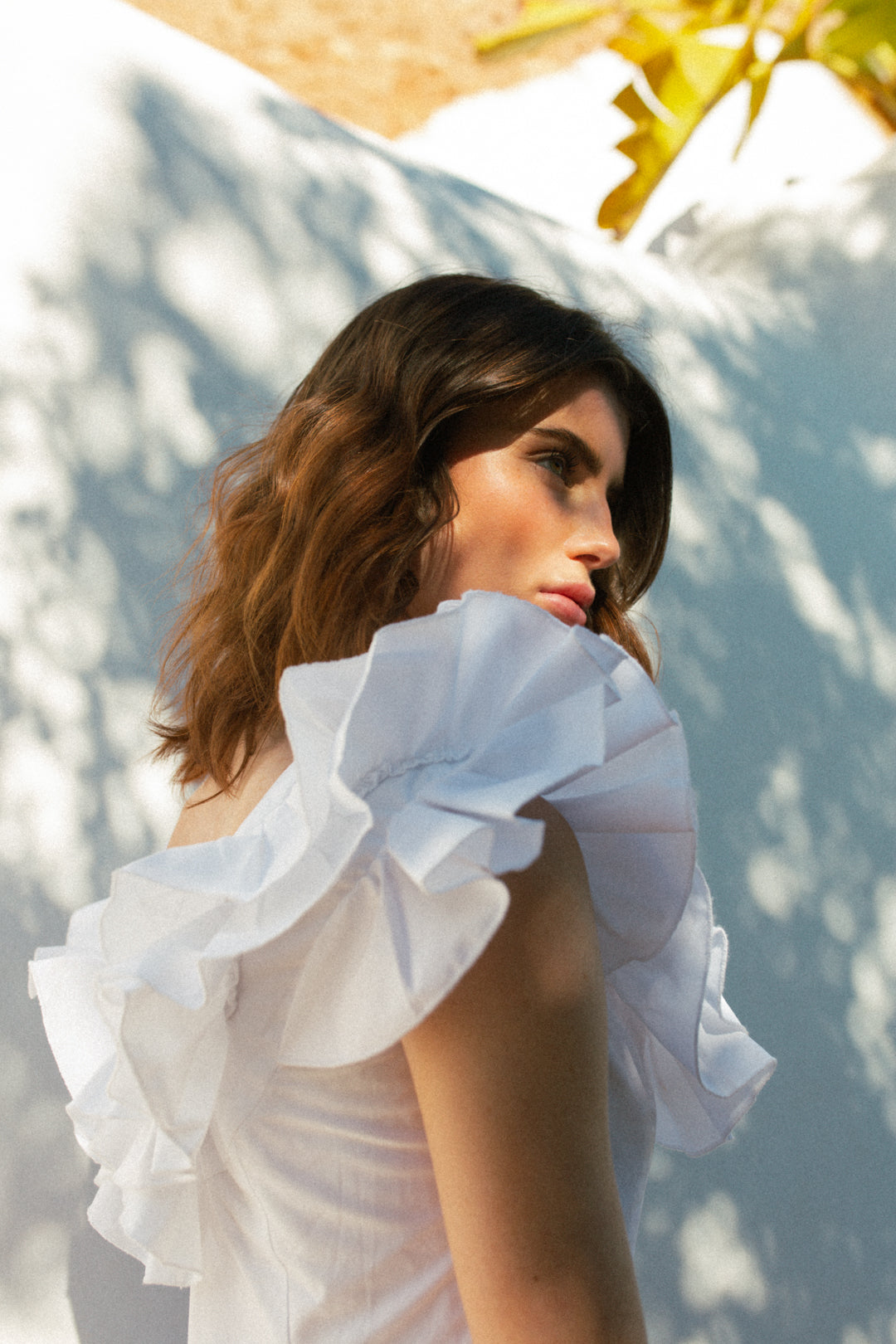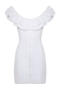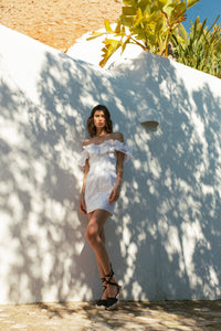 Introducing The La Paz, a fresh statement white mini that embodies the definition of romanticism through soft yet structured off the shoulder ruffling and corseted hook and eye details. Taking inspiration from the free-spirited nature of Ibiza The La Paz Cotton Bardot Mini Dress is the ultimate staple for summer. Crafted from soft yet structured white Cotton with flattering seams detailing this striking piece creates a bold yet feminine look.