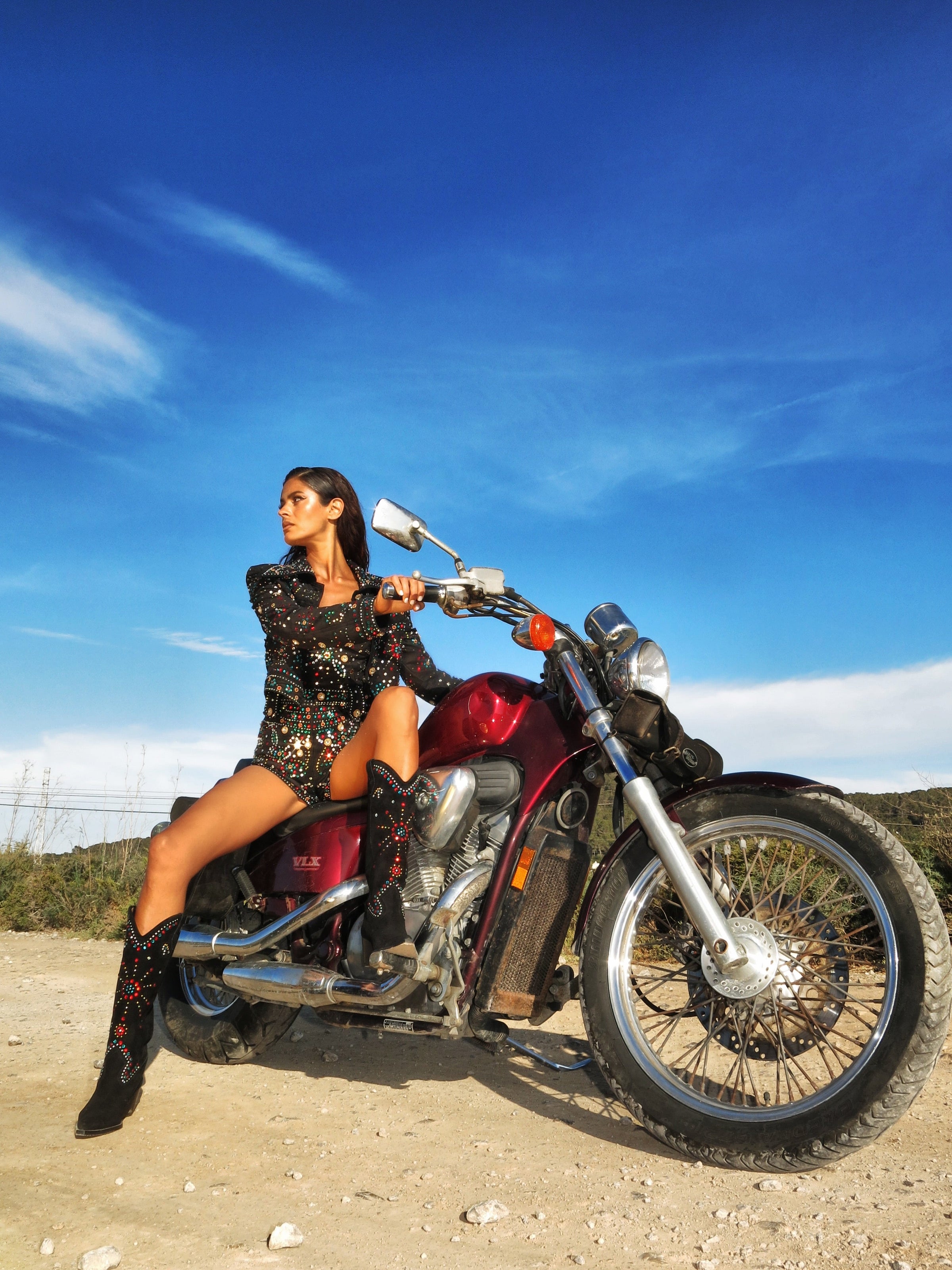The Ziggy Shorts are heavily embellished with gleaming gems that lend an opulent feel and will shimmer spectacularly on the dance floor. The ultimate chic short. Style yours with the matching Ziggy Jacket.