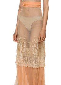 1920s Ivory and Peach Lace Gown