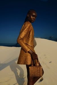Annie has infused a new metalwork technique into Clio’s signature silhouettes, merging intricate hand-stitched metal details from Annie's own collection with playful, colourful beadwork.