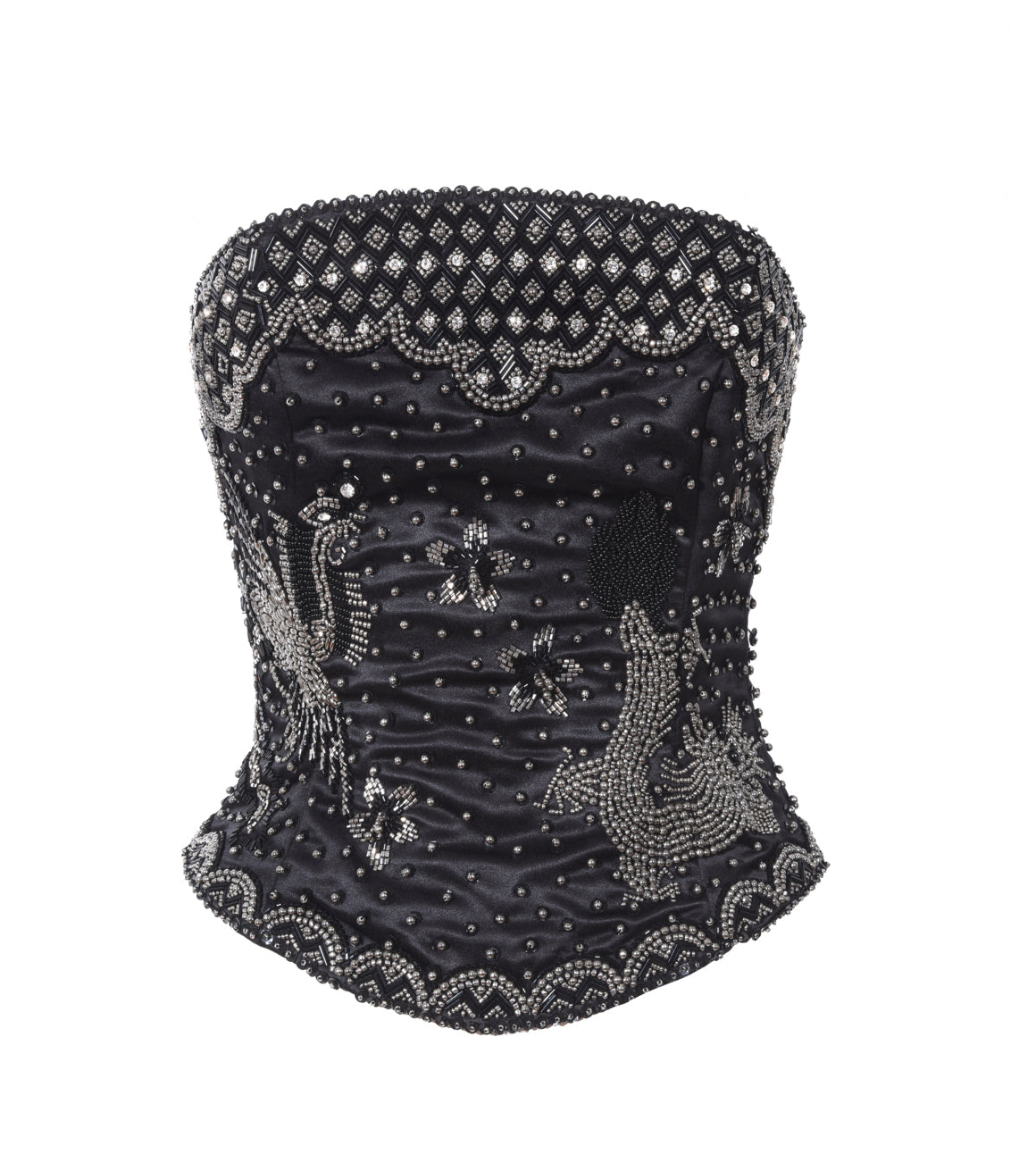 The intricately beaded corset hugs the curves, creating a classic yet contemporary hourglass silhouette that can be styled with the Black Dusty Skirt to create a co-ordinated look.
