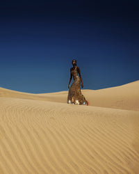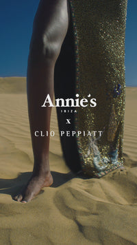 Each Gown is meticulously hand beaded with shimmering glass beads, taking weeks to complete each piece - a true celebration of delicate craftsmanship. Inspired by the vibrant mosaics of Annie’s home in Ibiza and the warmth of the Mediterranean summer, this collaboration brings that essence to life.