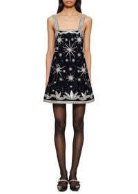 Step into a celestial dream with our new Stella Dress in Sapphire Blue. Fully embellished with intricate hand beading and adorned with shimmering Silver beads, the dress showcases an array of twinkling stars and bold geometric patterns, reminiscent of a starlit night sky. The soft, luxurious fabric perfectly complements the dazzling hand-sewn embellishments, creating a look that is both glamorous and enchanting.