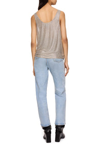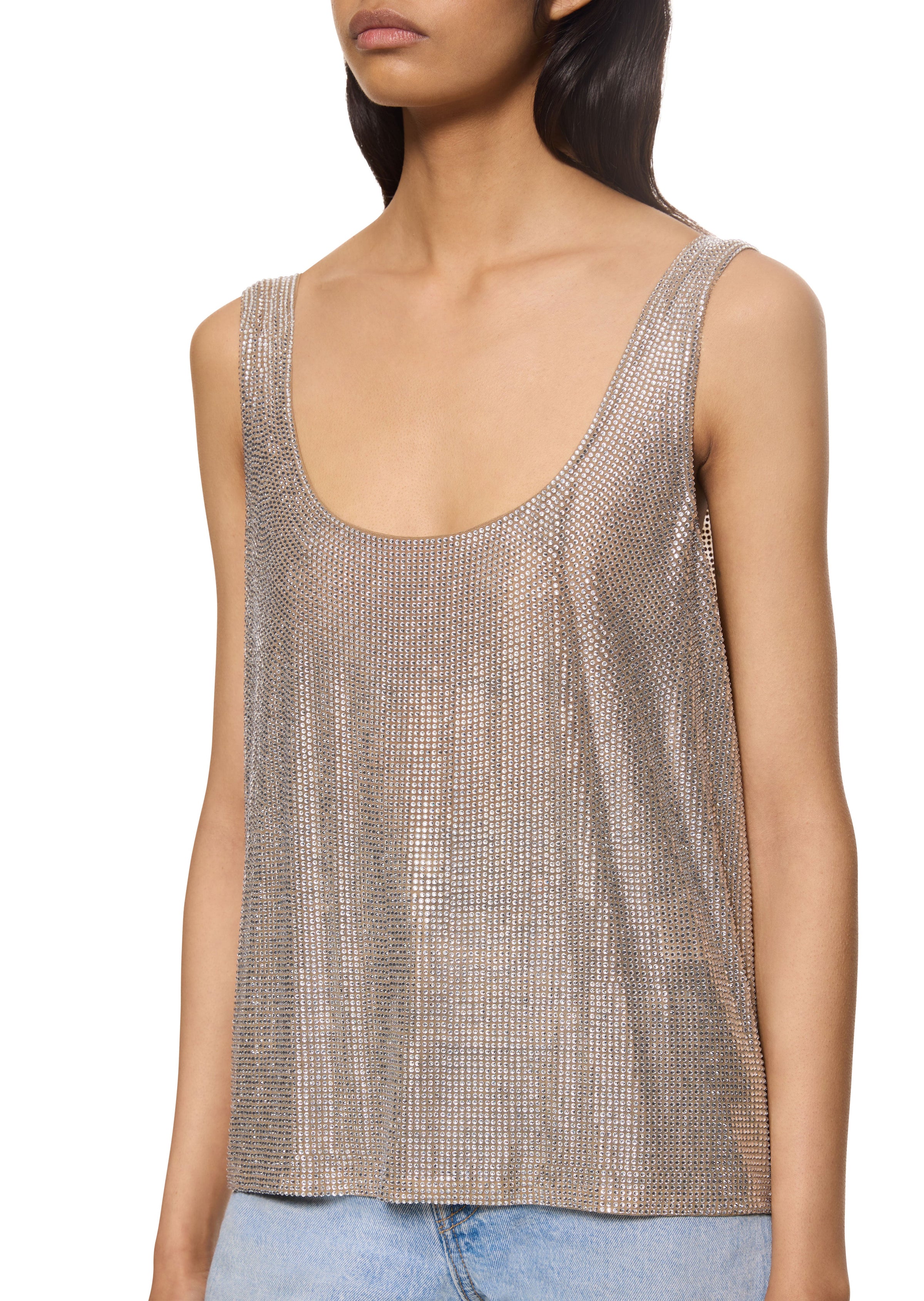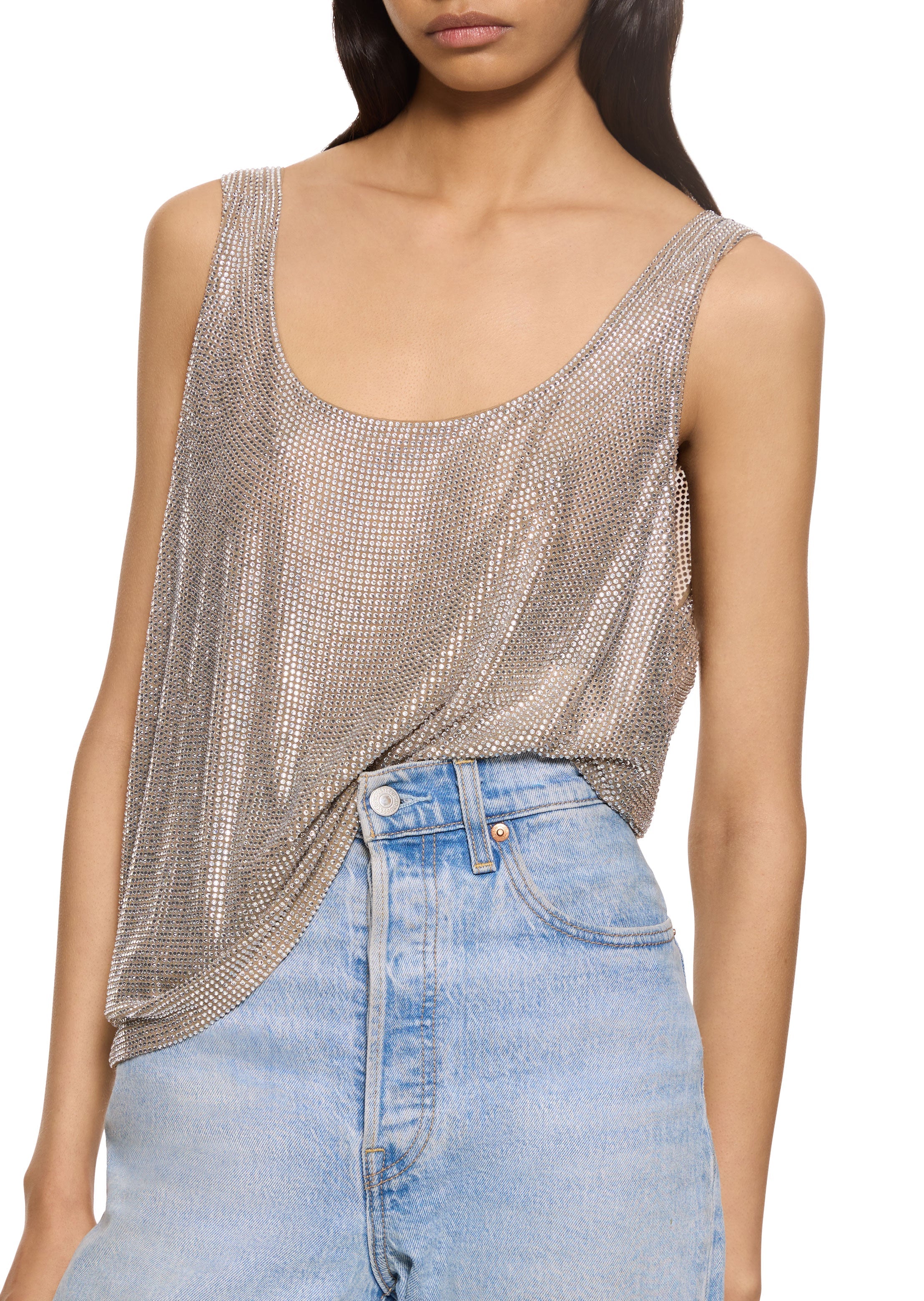 This tulle tank top is fully studded with sparkly all-over macro rhinestones, it has a draped relaxed fit making this an easy piece to wear.